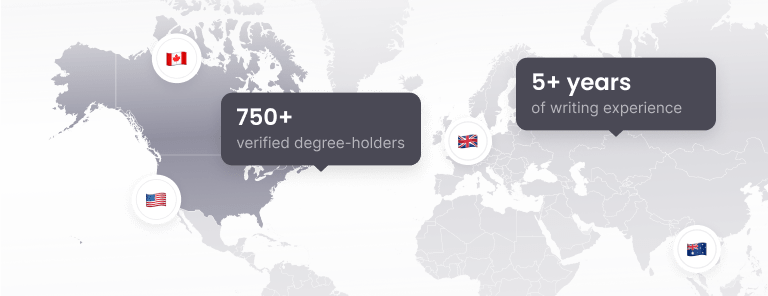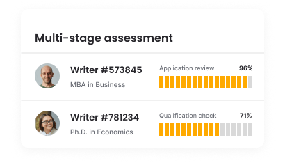 Our assignment writers hold BA, MA, or Ph.D. degrees from universities in the US, UK, or Canada, are native English speakers, experienced across 50+ disciplines, and consistently maintain an on-site rating of 4.8 or higher to accept new orders.