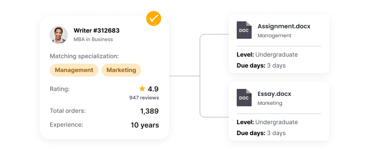 Our assignment writers have expertise in Law, STEM, Nursing, and other disciplines. We’ll match you with an expert based on your brief.