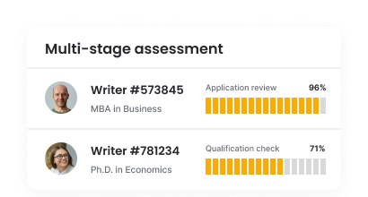 We work with seasoned, academically strong writers who know what admissions committees look for. They combine subject expertise, a personal approach, and years of experience to deliver exceptional work. They understand how to structure your narrative and emphasize your strengths, whether you are applying for school, college, an MBA, a masters, or a PhD. Every paper is fully original and tailored to your goals. With us, your story gets the attention it deserves.